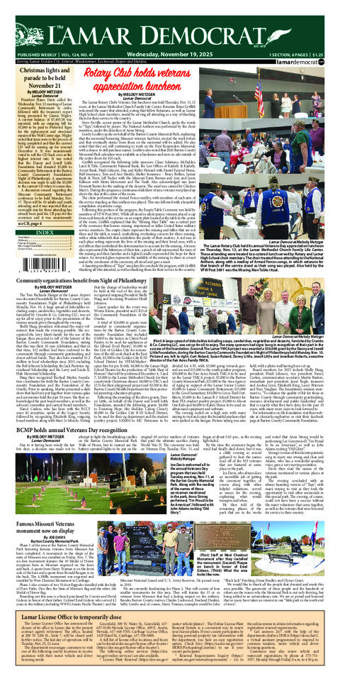 By MELODY METZGERLamar DemocratThe Lamar Rotary Club’s Veterans Day luncheon was held Thursday,...