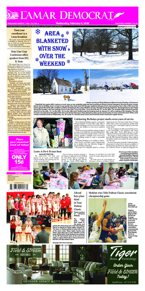 By MELODY METZGERLamar DemocratI do believe that this frigid weather, along with the white stuff...
